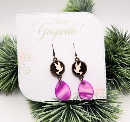 Presenetite birmanko ali bodočo birmansko botrico s čudovitim in simboličnim darilom – lesenimi uhani v obliki goloba. Ti krasni uhani so izdelani iz lesa, ročno pobarvani, nalepljeni na kovinsko osnovo, dodana školjka v obliki solze, kar jim daje unikaten in izrazit videz. Priporočamo, da se pred umivanjem in spanjem uhane sname.