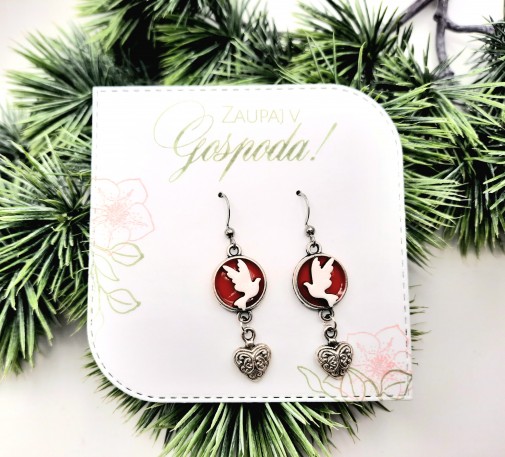 Darilo za birmo – nakit- leseni uhani viseči golob srce RR