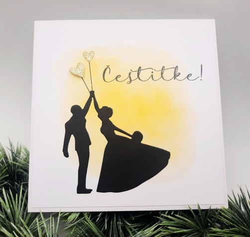 Čestitka za poroko velikosti 13,5 x 13,5 cm, s pripadajočo ovojnico je ročno izdelana. Osnova je iz 240 gramskega papirja, na katerem je ročno dodan potisk in drugi dodatki. Je čudovit spomin na sveti zakrament, kamor boste zapisali vaše želje. V kolikor bi radi čestitko ali vabilo po naročilu, mi pišite na info@zakrament.si
