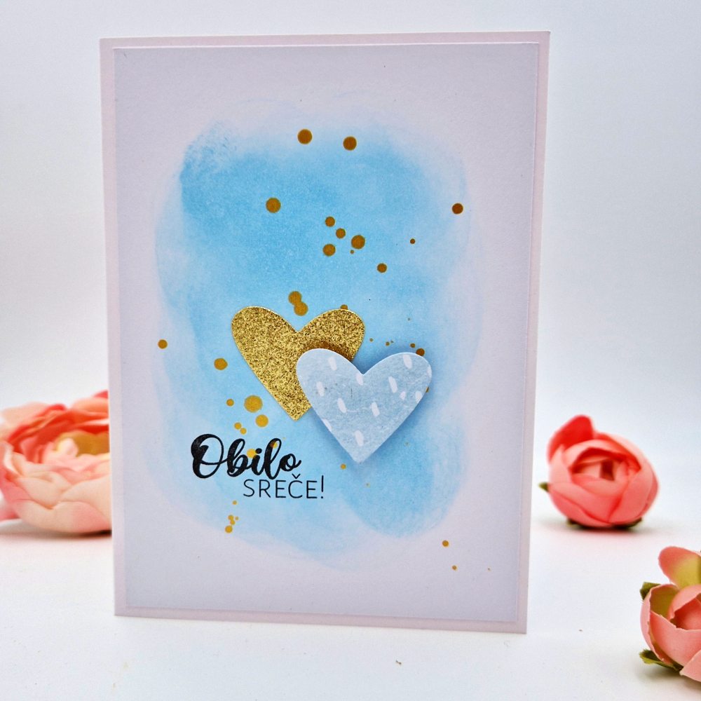 Čestitka za poroko velikosti 10,5 x 15 cm,  s pripadajočo ovojnico je ročno izdelana. Osnova je iz 240 gramskega papirja, na katerem je ročno dodan potisk in drugi dodatki. Je čudovit spomin na sveti zakrament, kamor boste zapisali vaše želje. V kolikor bi radi čestitko ali vabilo po naročilu, mi pišite na info@zakrament.si